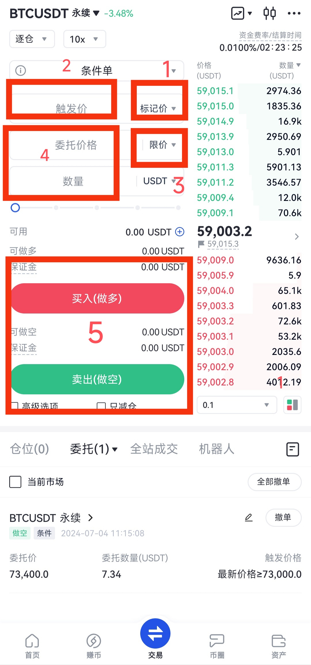 - 選擇委托類型(市價/限價)