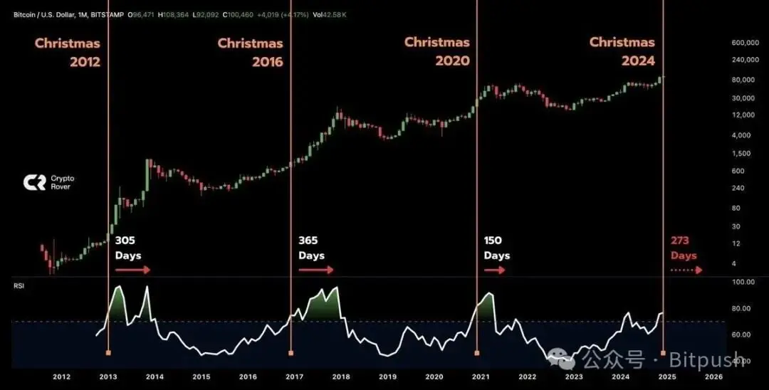 总的来说,比特币的“圣诞行情”历来难以捉摸。回顾历史,既有像2012年和2016年那样,节日期间大涨33%和46%的耀眼表现,也不乏平淡乃至下跌的年份。统计来看,自2011年以来,比特币在圣诞期间的平均涨幅约为7.9%。