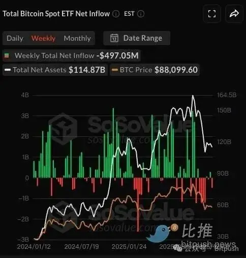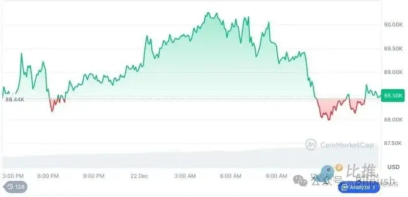 相比之下,加密市场显得异常冷清,比特币并没有跟随宏观顺风起飞,而是继续停留在8.8-8.9万震荡区间,缺乏节日前应有的进攻姿态。